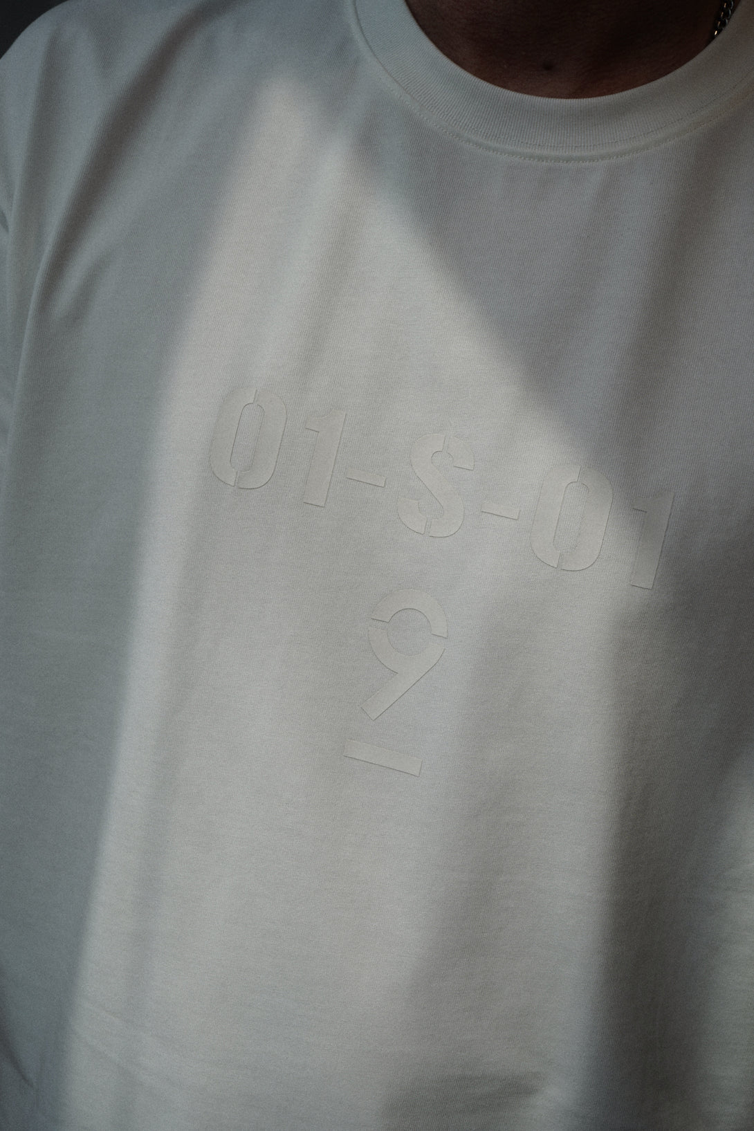 * Tone-on-tone numeric code print on chest